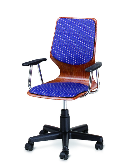 Sjedište i naslon su izrađeni od plemenitog drva presvučenog tkaninom, baza je izrađena od inžinjerske termoplastike, a kotačići su elegantnog dizajna i presvučeni silikonskim pneumatikom koji ne ostavlja tragove bez obzira na podlogu.